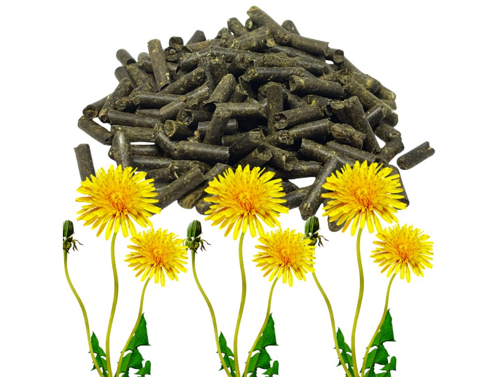 Složení: 100 % sušená pampeliška (list a stonek), lisovaná do granulí. Bez obilovin, bez přidaných látek.